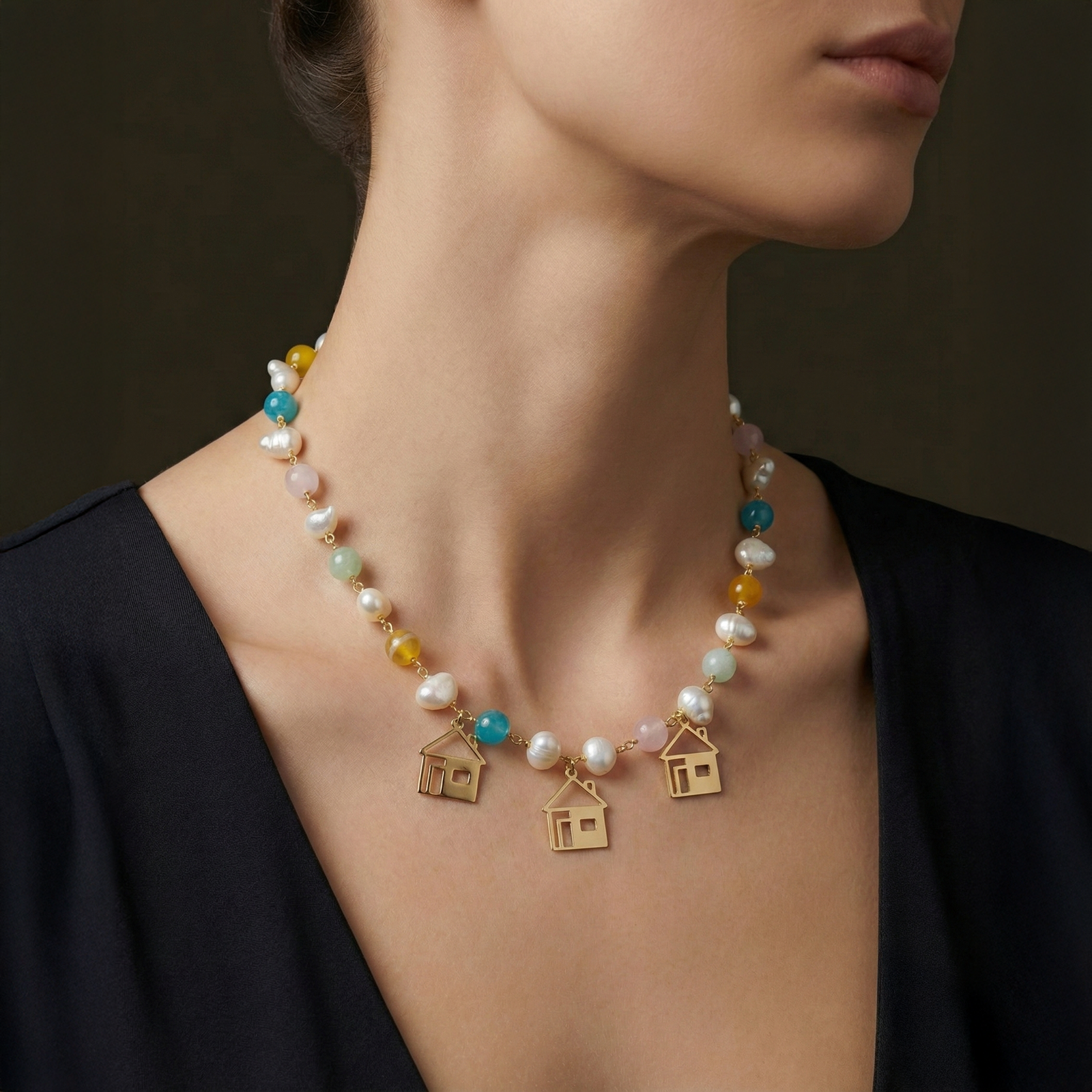 Collar en Piedras Naturales con Dijes tipo Casita