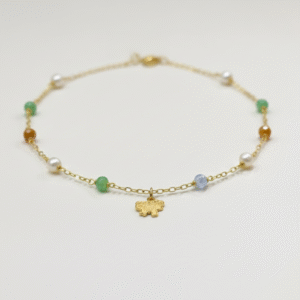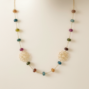 Collar en Piedras Naturales con Dijes de Flor en Oro Laminado