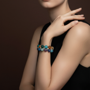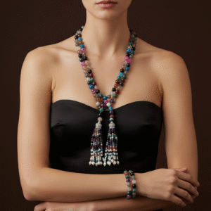 Collar Doble Uso, con su Pulsera, En Piedras Ágata Multicolor