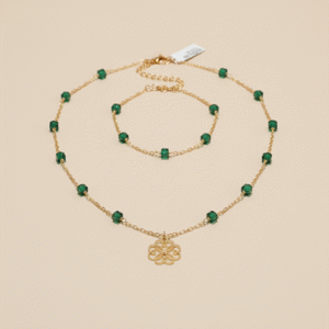 Collar Doble Uso, con su Pulsera, En Piedras Ágata Multicolor