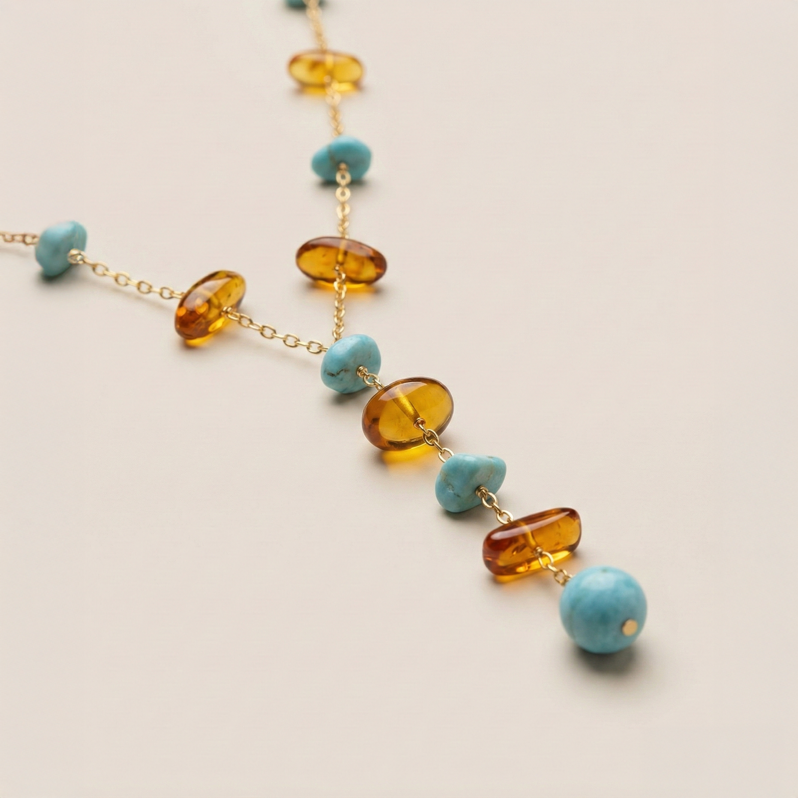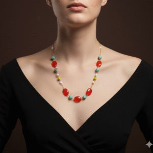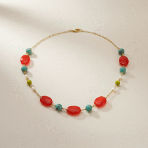 Collar Doble Uso, con su Pulsera, En Piedras Ágata Multicolor