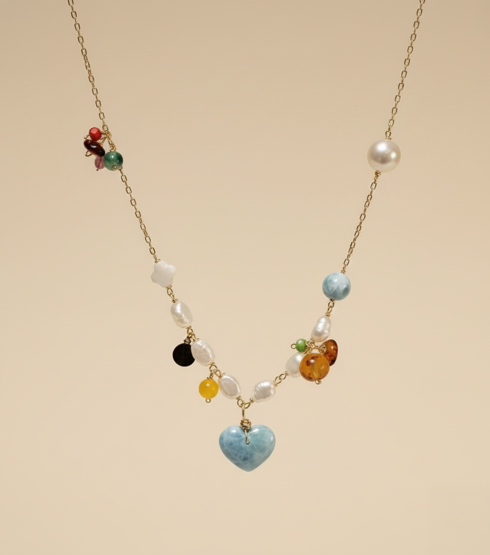 Be the first to review “Cadena de Larimar, Perlas, Ámbar y Coral”